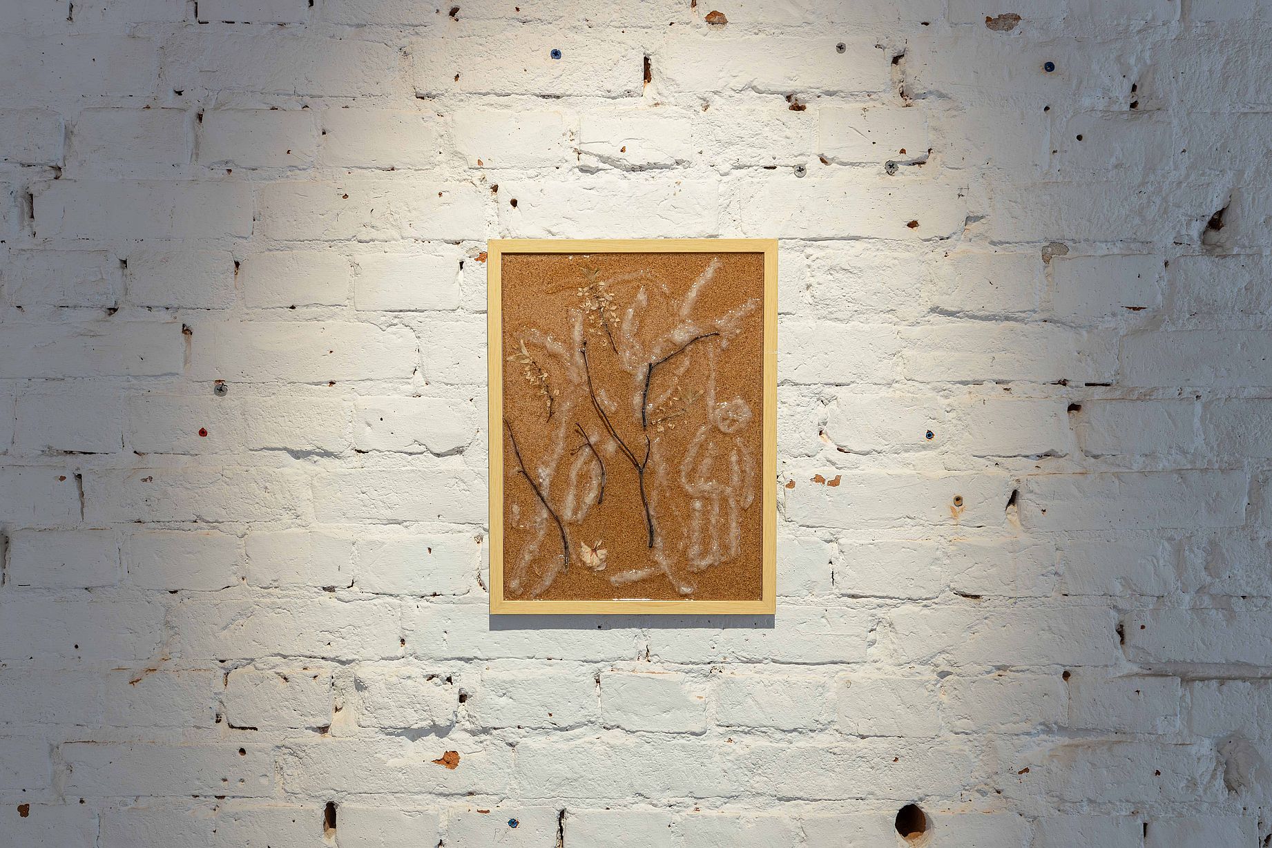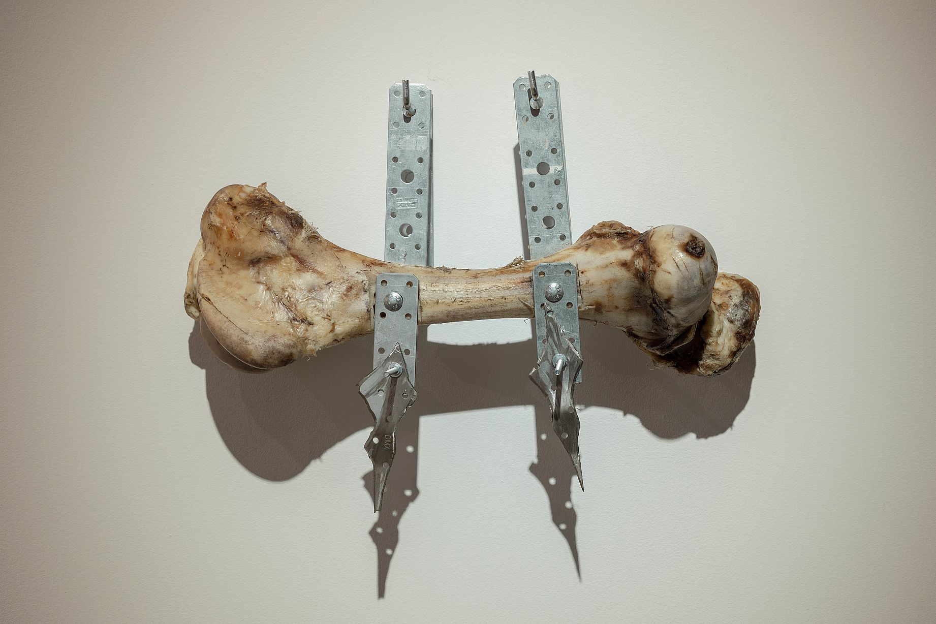 Po wejściu do następnej sali wzrok przyciąga obiekt Mikołaja Sobotki „Type of External Fixation”, dosłownie ucieleśniający tytuł pracy – stelaż używany do stabilizacji kości – ale też, jak się wydaje, nawiązujący do rozumienia terminu „zewnętrznej fiksacji” w kontekście psychiatrycznym, jako obsesyjnego zainteresowania czy silnych emocji dotyczących konkretnego przedmiotu. Razem z kolejną pracą artysty o zbyt prawdziwym tytule brzmiącym „Człowiek całe życie zapierdala i nic z tego nie ma”, która przybrała formę przypominającą pradawny zegar, w którym coś jest jednak nie tak, jak powinno być, „Type of External Fixation” mocno kontrastuje ze znajdującymi się na przeciwległej ścianie delikatnymi, niemal efemerycznymi obrazami-obiektami Dominiki Olszowy z cyklu „Malarstwo z waty”, w których głównym tworzywem jest właśnie wata, podobrazia stanowią natomiast tablice korkowe.