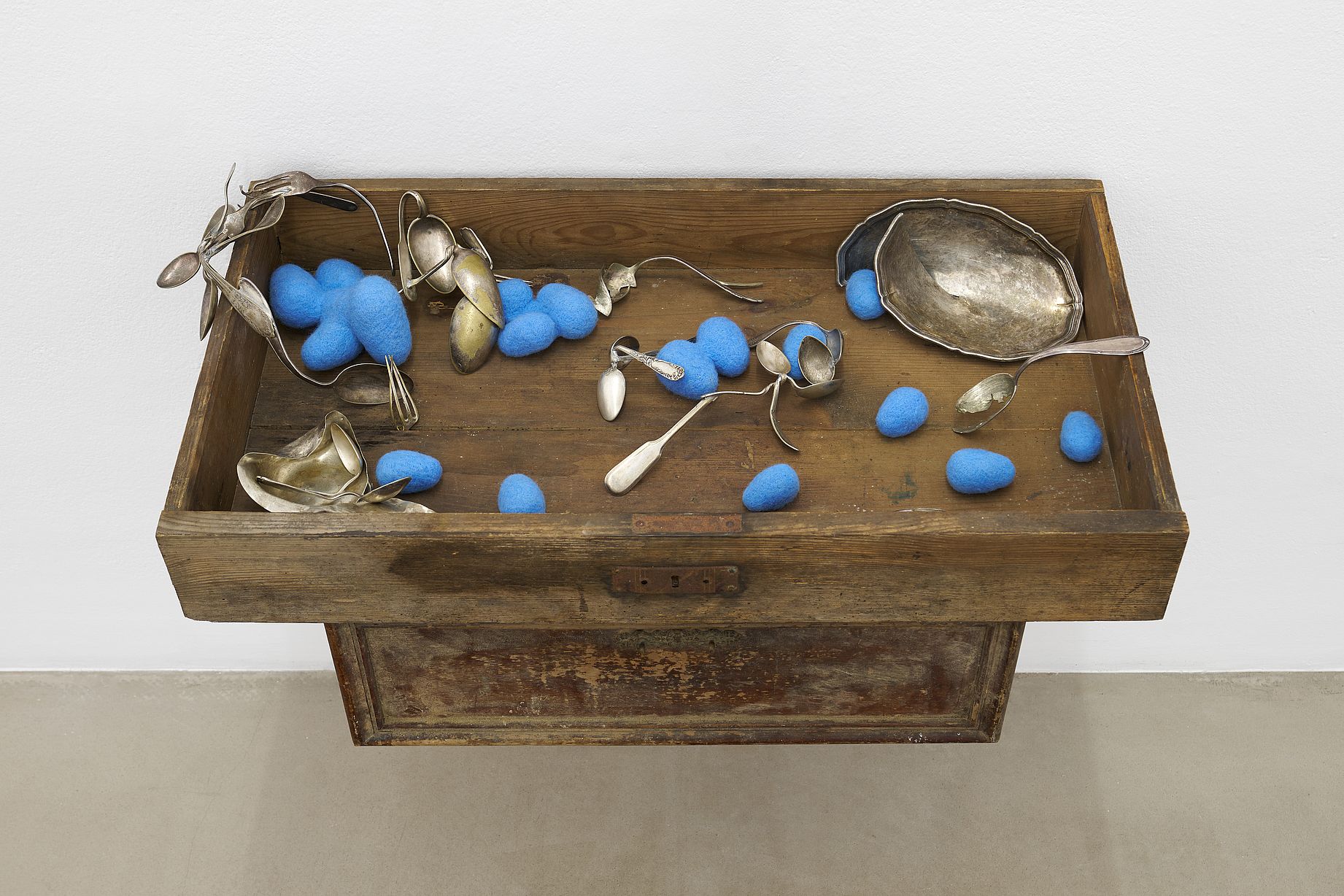 Oprócz stałego grona odbiorców mamy też wielu turystów. Jeśli ekspozycja na to pozwala, staramy się otwierać drzwi i przyciągać odbiorców. Anegdot jest oczywiście wiele, ale zacznę od tego, że najważniejszymi osobami facylitującymi odbiór sztuki są asystenci galerii. One są twarzami tych miejsc. Teraz pracuje ze mną Natalia Śliwińska, która wprowadza w kontekst prac, a gdy sytuacja tego wymaga – pozwala im na samodzielne odkrywanie ekspozycji. Najbardziej emocjonującym projektem ostatnich lat była wystawa „Im bardziej obkrawasz, tym większa się staje” Krzysztofa Gila prezentowana jako część wystawy zbiorowej „Wołają na mnie “Cygan, choć tak się nie nazywam”, kuratorowanej przez Anię Batko. W ramach instalacji na środku galerii stanął stół ze świecami z oświetloną postacią-manekinem siedzącą obok. Całość była oniryczna, tajemnica, postać wyglądała jakby była żywa i przyciągała tłumy z ulicy. Była też bardzo instagramowa i fotogeniczna. Jej moc płynęła ze scenograficznego podejścia do przestrzeni. Wchodziło się do wnętrza „cygańskiego” namiotu z literackich i historycznych wyobrażeń. Równie zaskakującym epizodem był performans Przemka Branasa w ramach wystawy „I WANNA BE YOUR COLONIZER”, podczas którego para zakochanych zaczęła lizać statek – obiekt artysty wykonany z siarczanu miedzi(II) i bromku/chlorku, zupełnie nas zaskakując.
