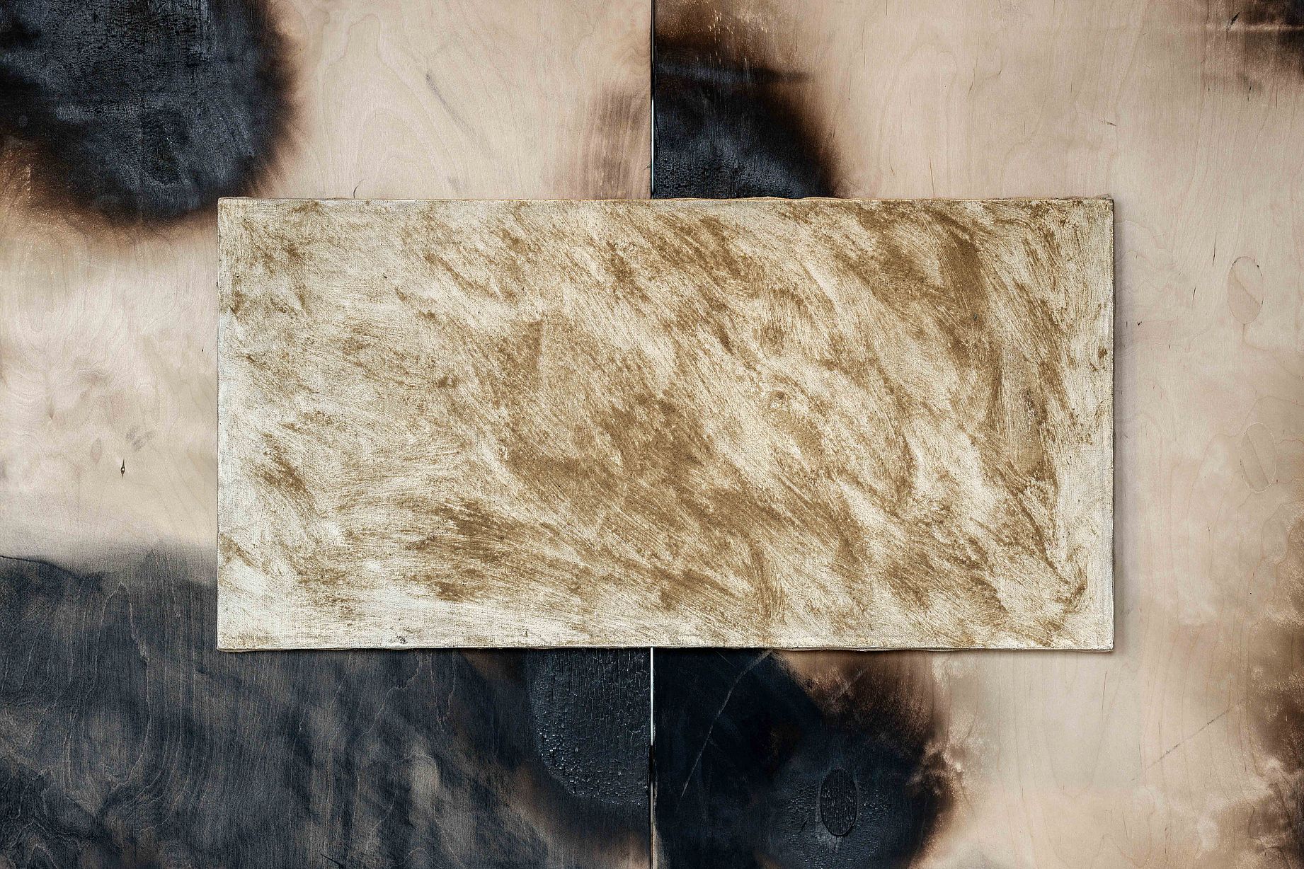 W tej sytuacji tradycyjne pojęcia historii sztuki, takie jak pejzaż czy martwa natura nabierają nowych znaczeń. Podobnie jak nazwy palety barw, które pojawiają się w pracach Katyi Buchatskiej. Artystka samodzielnie tworzy farby z pigmentów pozyskanych z ziemi – zupełnie jak dawni artyści. W tym przypadku mamy do czynienia jednak z dodatkową warstwą znaczeniową – Buchatska korzysta z próbek pozyskanych z terenów okupowanych i mieli je później wraz ze znajdującymi się w niej fragmentami zburzonych budynków. Swoim obrazom nadaje też charakterystyczne nazwy wykorzystujące tradycyjne nazwy farb – Hostomel Red, Horenka Ochre, Moshchun Umber nawiązujących do szlachetnych pigmentów pozyskanych z ziemi i skał nadających farbom odpowiedni odcień. Pamiętajmy o tym, że klasyczne pejzaże w historii sztuki miały często silnie patriotyczny wymiar, wizualizowały krajobraz ojczyzny lub tęsknotę za nim. Na wystawie również możemy odnaleźć ten wątek.