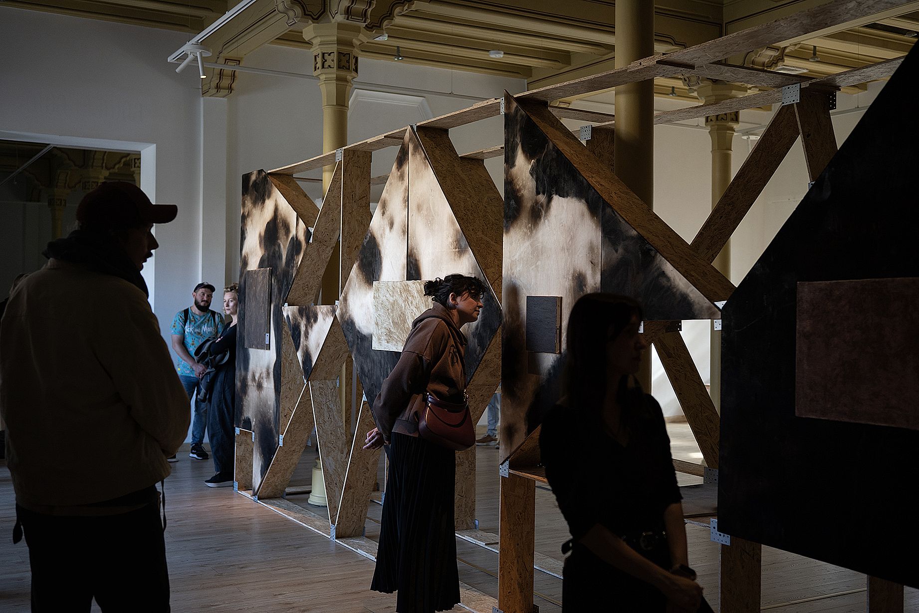 Te narracje o często osobistym charakterze są pozbawione dydaktyzmu, zamiast wielkich haseł w kameralny i intymny sposób skupiają uwagę na najbardziej namacalnych wycinkach rzeczywistości, czyniąc ją bliższą. W tkankę wystawy zaś mocno ingeruje nadpalona architektura BudCud, która sama ma w sobie coś ze zdewastowanego, wojennego krajobrazu. Drewniana konstrukcja, która przywodzi na myśl zwęglony szkielet bywa nazbyt wyrazista, niewygodna, ale zdaje się, że właśnie o taki efekt chodziło, bo przyjemnie o katastrofie mówić się nie da. Geometryzujący układ jest funkcjonalny, znajdzie się miejsce do siedzenia, by patrzeć na krajobrazy, sam może być też wszystkim: ruinami budynku, albo cmentarzyskiem lasu.