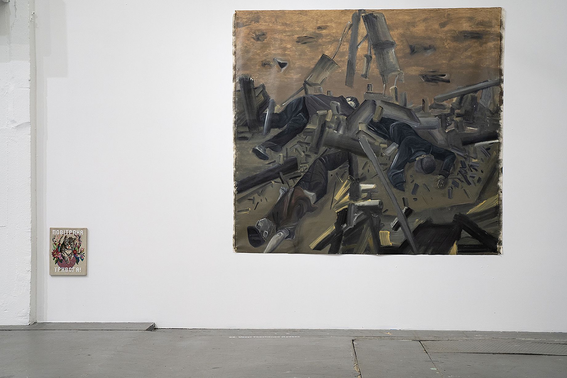 Kameralna prezentacja prac podobnie jak we Wrocławiu eksplorowała wątek krajobrazu, w tym szerszym i węższym sensie, oraz jego potencjał jako języka służącego do mówienia o wojnie, gdy inne środki zawiodły. Kuratorom udało się stworzyć symbiozę pomiędzy wątkami militarnymi i naturalnymi. Wrażliwość na tematy ekologiczne jest również wyraźna, choćby poprzez „Dziurki” Kateryny Aliinyk, gdzie artystka poprzez barwy i faktury drobiazgowo oddaje i detale ukraińskiej przyrody i rany jej zadane.