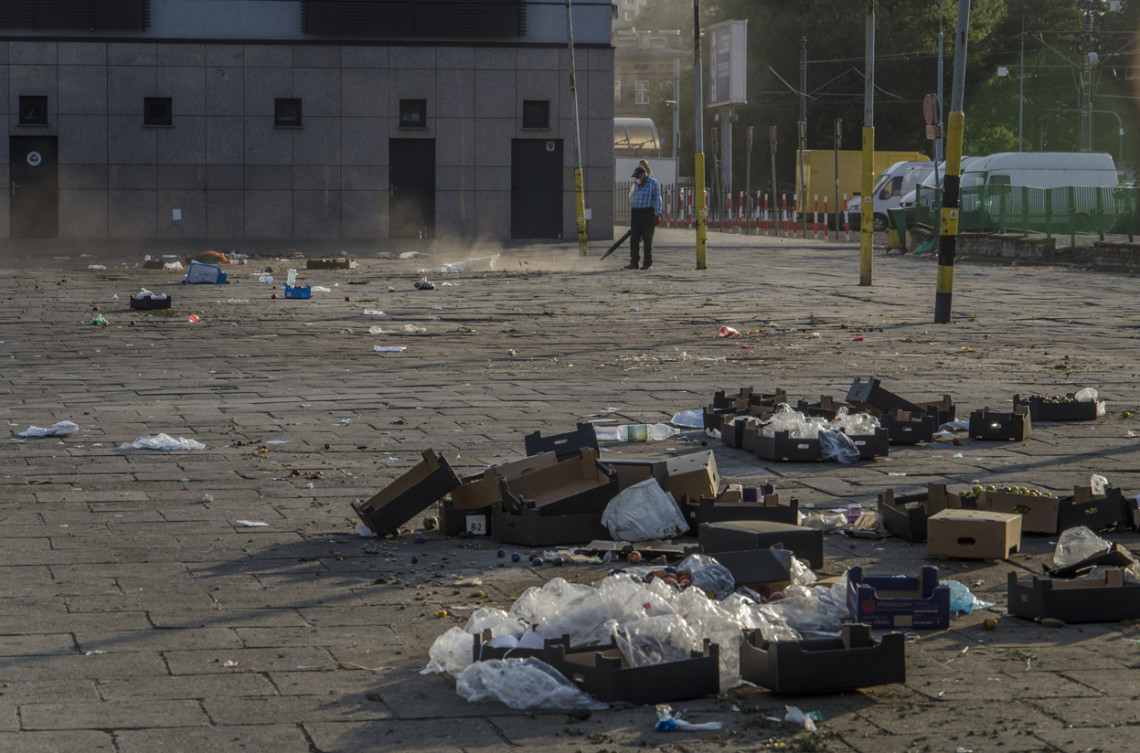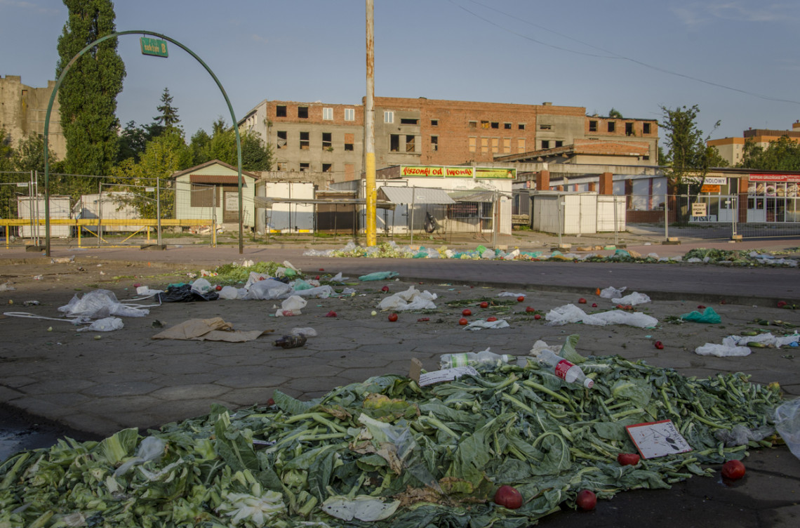 pomidory. Kapusta jak szmata i śliwka pękata. A na Bałutach