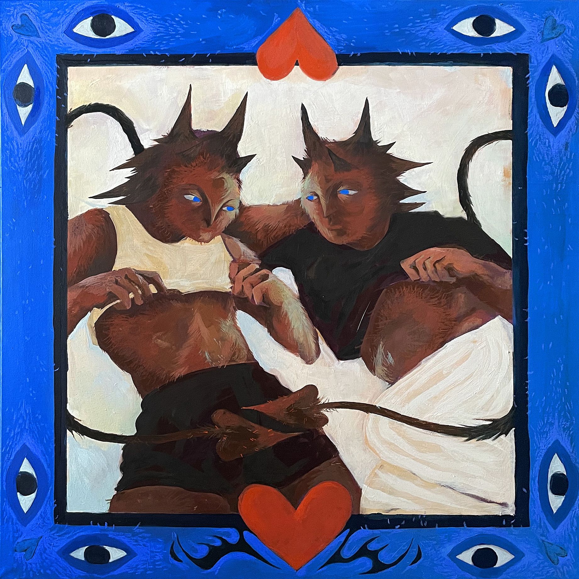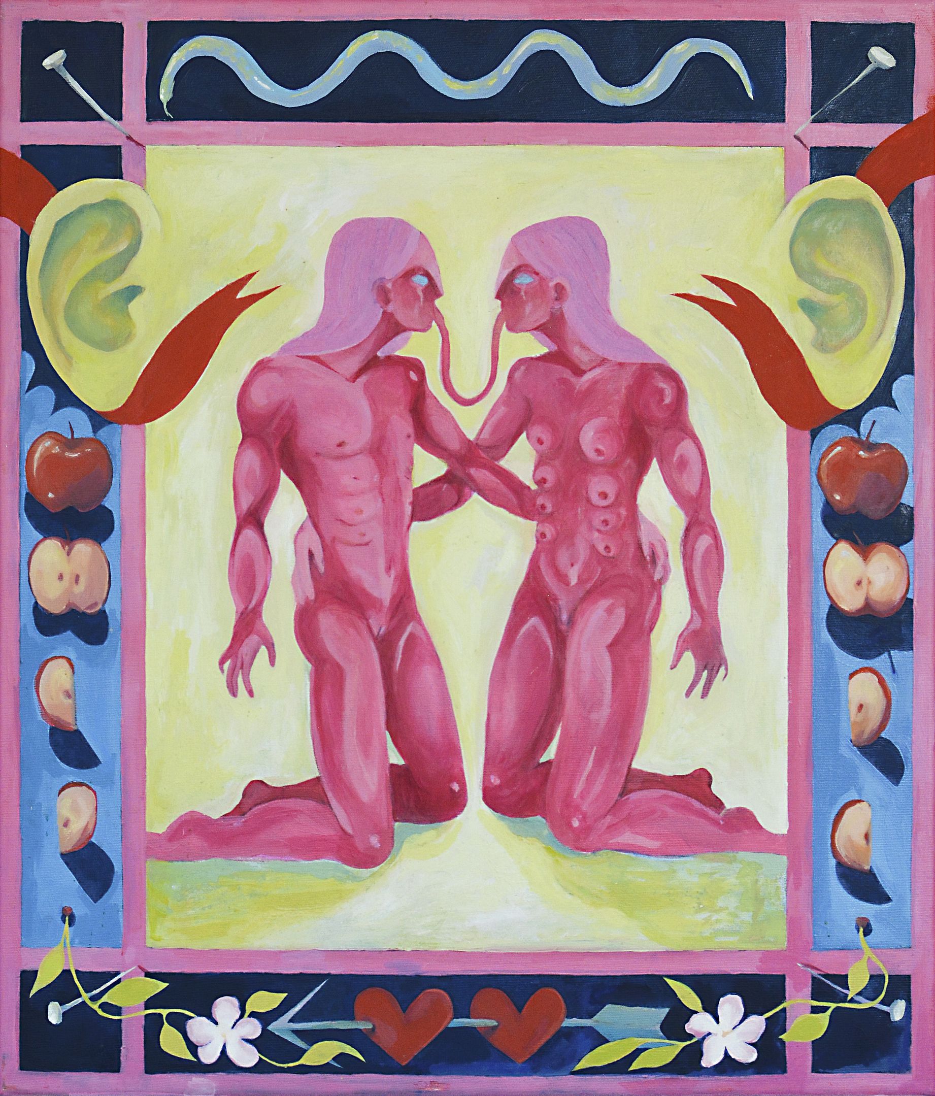 Oliwer Okręglicki - urodzony 2000 w Katowicach. Jest absolwentem projektowania graficzego na ASP w Katowicach, obecnie studiuje na kierunku Sztuka i Wzornictwo Ceramiki na ASP we Wrocławiu. Zajmuje się głównie malarstwem, ceramiką i książką. Niezależnie od medium, w swojej działalności artystyczno‐projektowej włóczy się wokół zagadnień związanych z doświadczeniami queerowości. Inspirują go własne przemyślenia i doświadczenia, opowieści bliskich, fantazje. W swoich pracach dąży do stworzenia przestrzeni transowej utopii, wizji życia wartego przeżycia poza utorowanymi społecznymi normami.