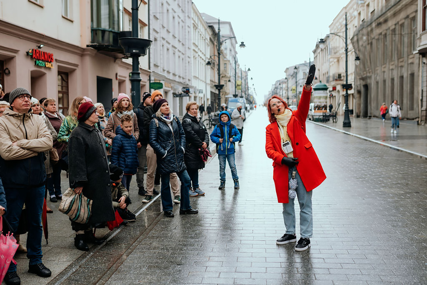 Myślę, że cięższa niż się wydaje. Ta praca opiera się na relacjach, przede wszystkim trzeba lubić ludzi. Do tego dużo się chodzi, sprawdziłam to, w 2024 przeszłam ponad 2000 km. Ta praca wymaga też dużo energii, po 4 h wycieczce w domu już nie chce mi się gadać. Do tego trzeba się ciągle uczyć i szkolić, bardzo dużo osób interesuje się teraz Łodzią, więc książek, artykułów jest bardzo dużo. I sprawy bieżące, ludzie często pytają co dzieje się w Łodzi, jak się tu żyje, ile kosztuje metr kwadratowy i czy Widzew ostatnio wygrał.