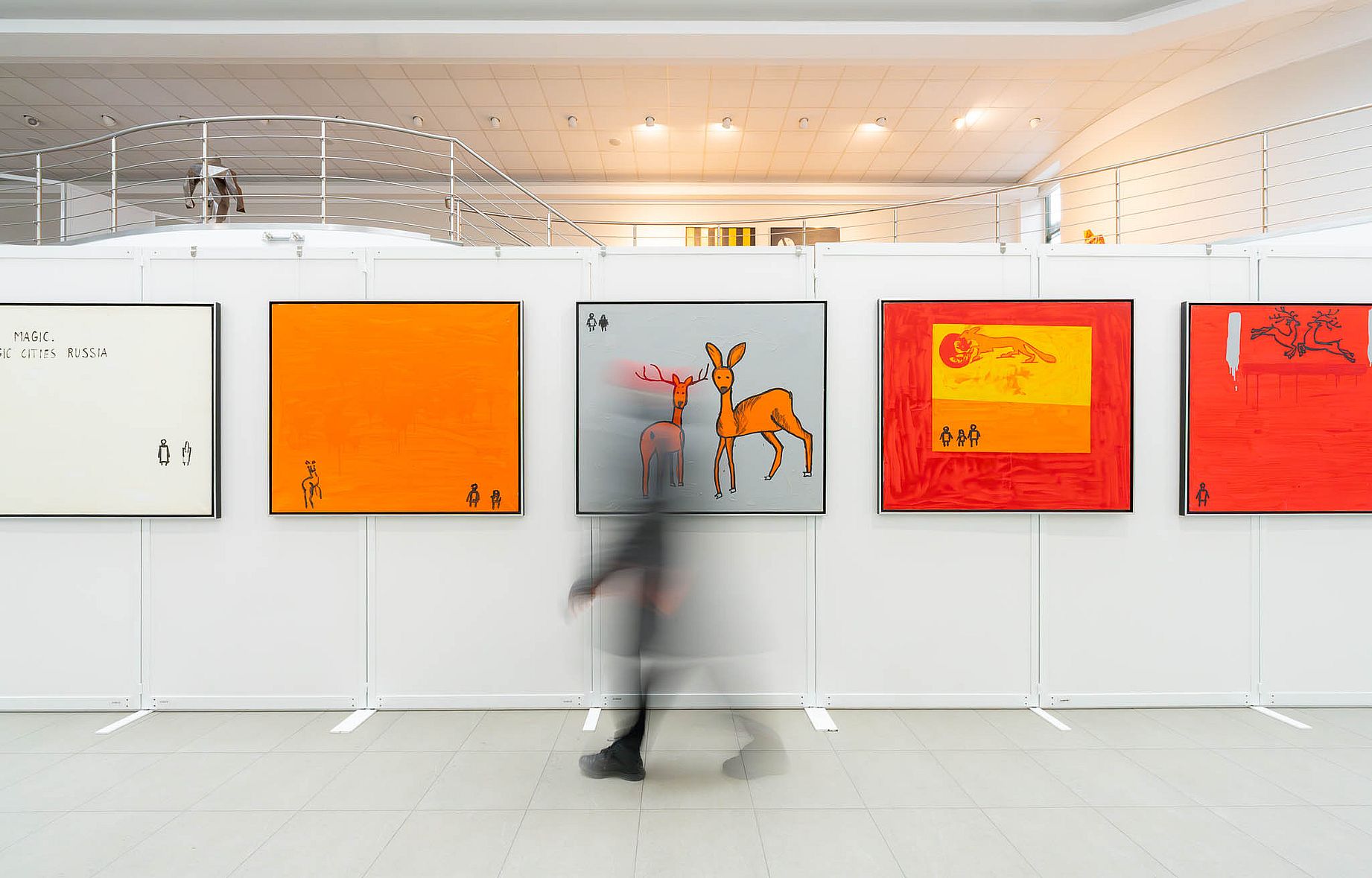 AC: Kręgosłupem wystawy jest przejście między trzema sposobami przemieszczania się na osi zapis – znak – doświadczenie. Pawlak zapisuje świat jak notatki z drogi w medium malarstwa, widoczny jest gest artysty, ślad pędzla, emocja. Orłowski robi znak w przestrzeni publicznej – mocny, społeczny, angażujący do reakcji na stereotypy. A gry to doświadczenie wirtualne, wciągające w świat równoległy, gdzie spacer jest mechaniką, sposobem organizacji czasoprzestrzeni. To wszystko jest jedna trasa, tylko trzy różne rejestry jej odbioru.